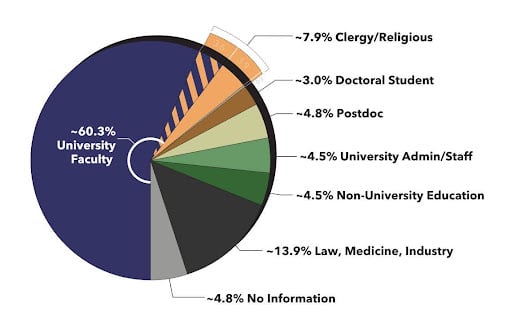 In an effort to better understand the impact and effectiveness of its mission, the Lumen Christi Institute conducted a comprehensive study on the career paths of alumni from its PhD summer seminars held between 2011 and 2019. Tracking a total of 330 alumni, the results highlight the lasting influence of the summer seminar programs. Notably, 60.3% (199 alumni) have gone on to teach as faculty at universities, underscoring the Institute’s commitment to educating and inspiring the next generation of academic leaders. Additionally, 7.6% of alumni have pursued religious life or become clergy, with 14 individuals embracing this vocation after attending the seminar. The study also tracked alumni who entered various professional fields, university administration, postdoctoral research, and other vocations. The Lumen Christi Institute celebrates the diverse paths of its alumni and invites all former participants to reconnect and share their stories.