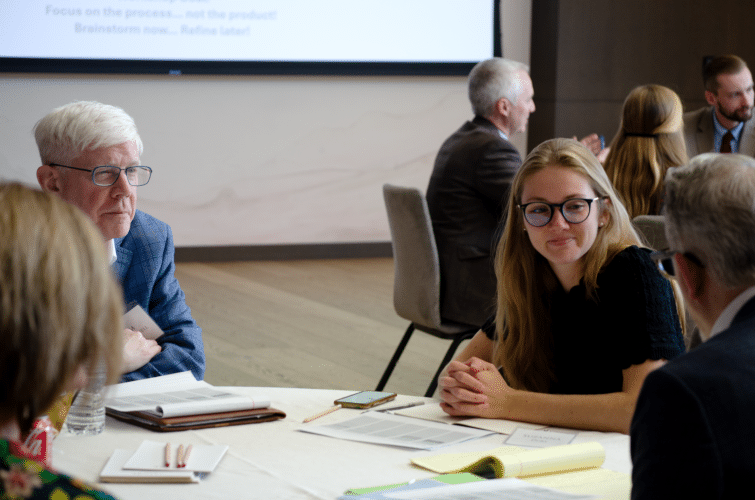 The conference included over 50 leaders from colleges and universities across the country, with representatives from Anselm House at the University of Minnesota, Chesterton House at Cornell University, and the Beatrice Institute at the University of Pittsburgh, among others. A highlight of the conference was a public panel discussion featuring John Boyer (University of Chicago), Sarah Schnitker (Baylor University), and Jonathan Brant (Wycliff Hall, Oxford University) on Virtue, Moral Formation, and the University.