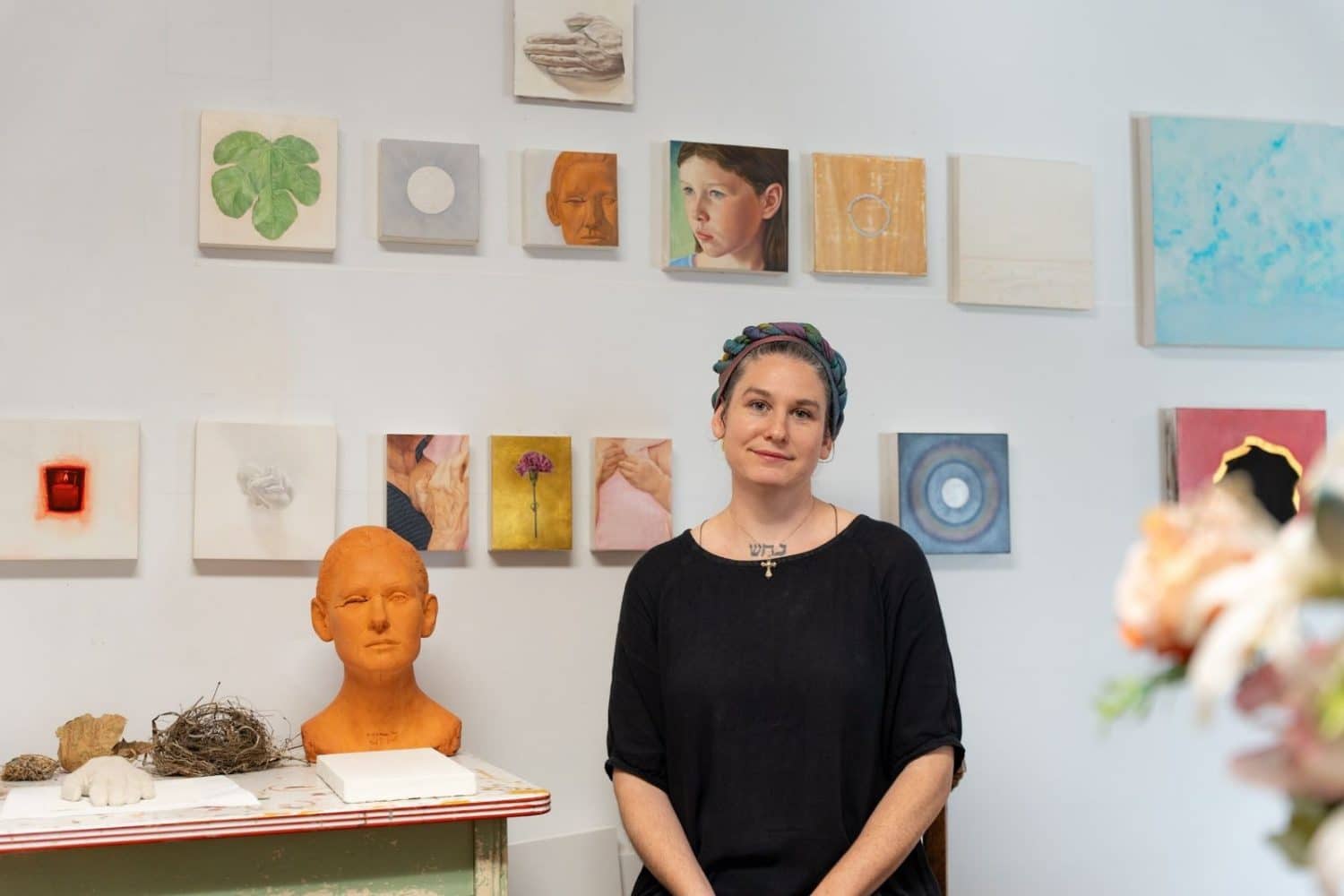 Sarah Crow was born in Santa Cruz, California in 1984. She earned her BFA in Painting with a minor in Creative Writing from the Maryland Institute College of Art in 2013, and her MFA in Painting from the School of the Art Institute of Chicago in 2016, where she has also taught as a lecturer in the Painting and Drawing department. She has exhibited in numerous national juried exhibitions and has done commissioned work for private institutions and clients throughout the United States. She currently lives and works in Chicago, Illinois, where she is adjunct faculty in the Art & Design Department at Saint Xavier University and is Artist-in-Residence at St. Gregory’s Hall.